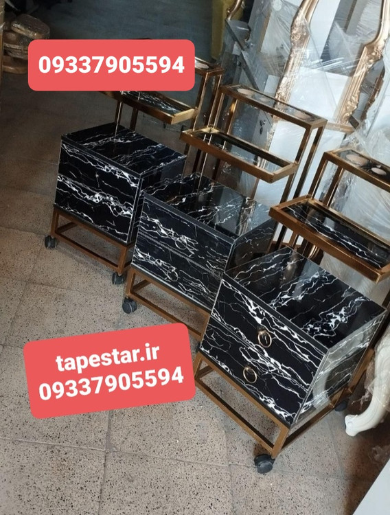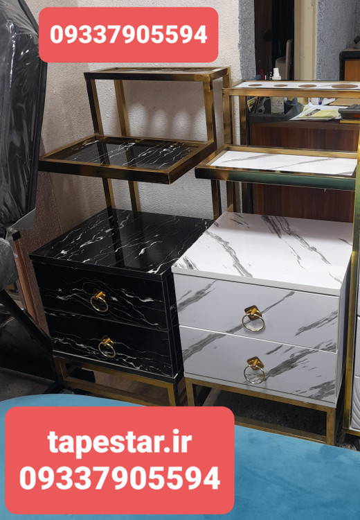 ترولی آرایشگاهی فلزی چوبی دوکشو مشکی سفید طرح سنگ ارسال به سراسر ایران