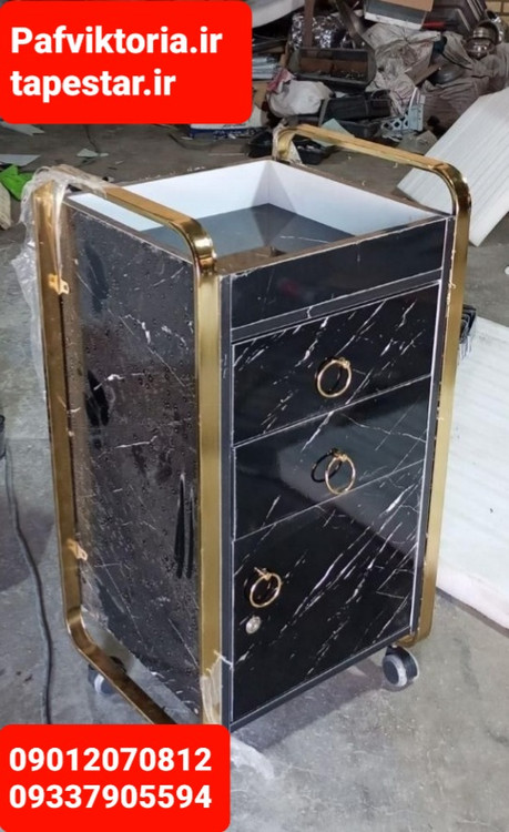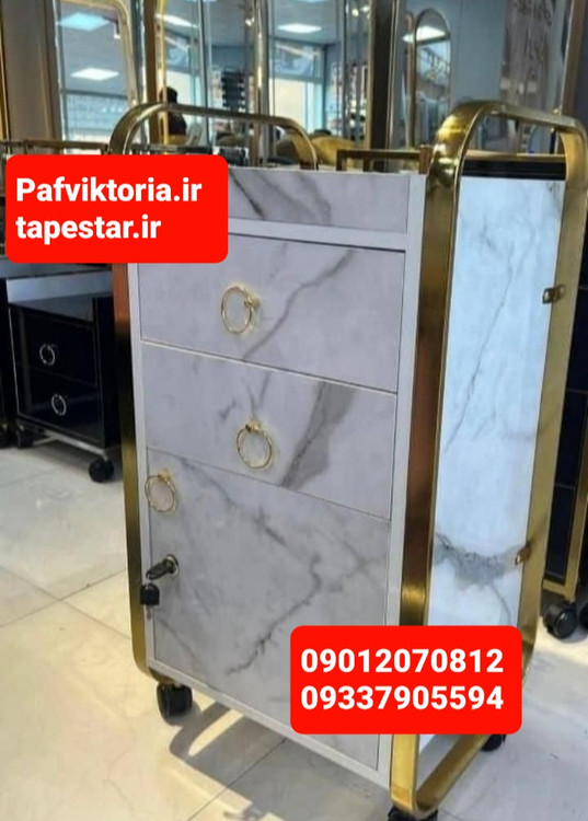 ترولی آرایشگاهی چوبی تسمه ای دو کشو یه کمد سفید مشکی ارسال به سراسر ایران امکان خرید حضوری