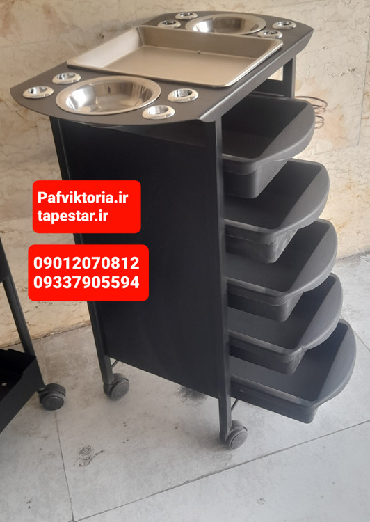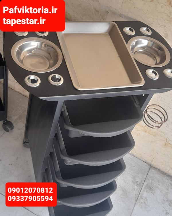 ترولی آرایشگاهی تتو فلزی کاسه ای پنچ کشو چرخ دار ارسال به سراسر ایران امکان خرید حضوری