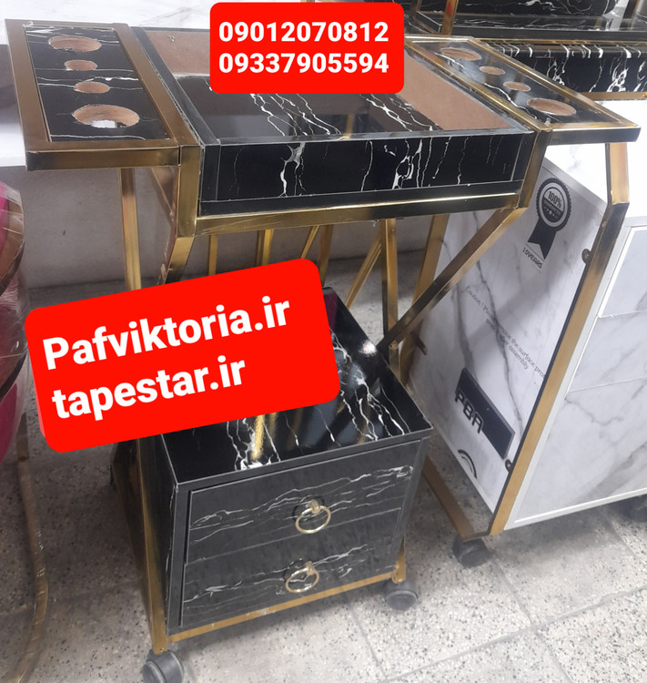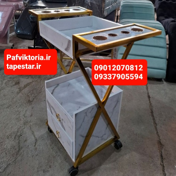 ترولی آرایشگاهی چوبی دو کشو جاسشواری سفید مشکی ارسال به سراسر ایران امکان خرید حضوری