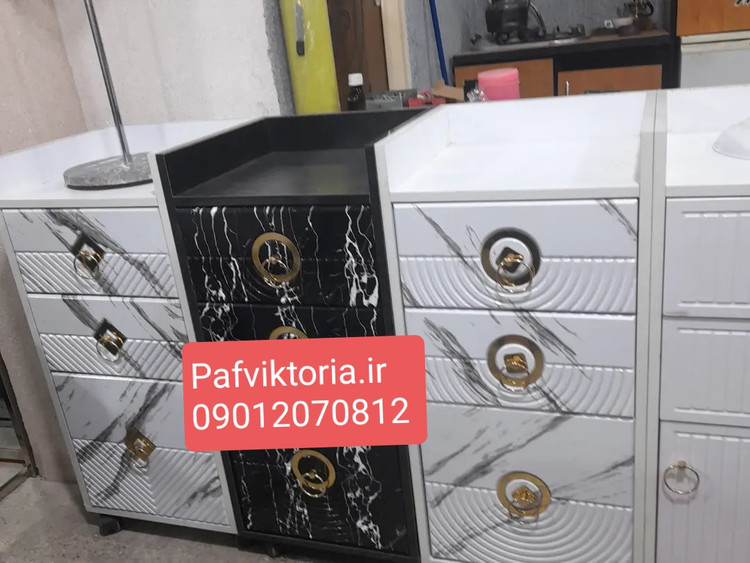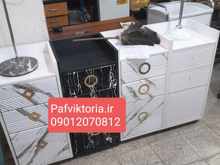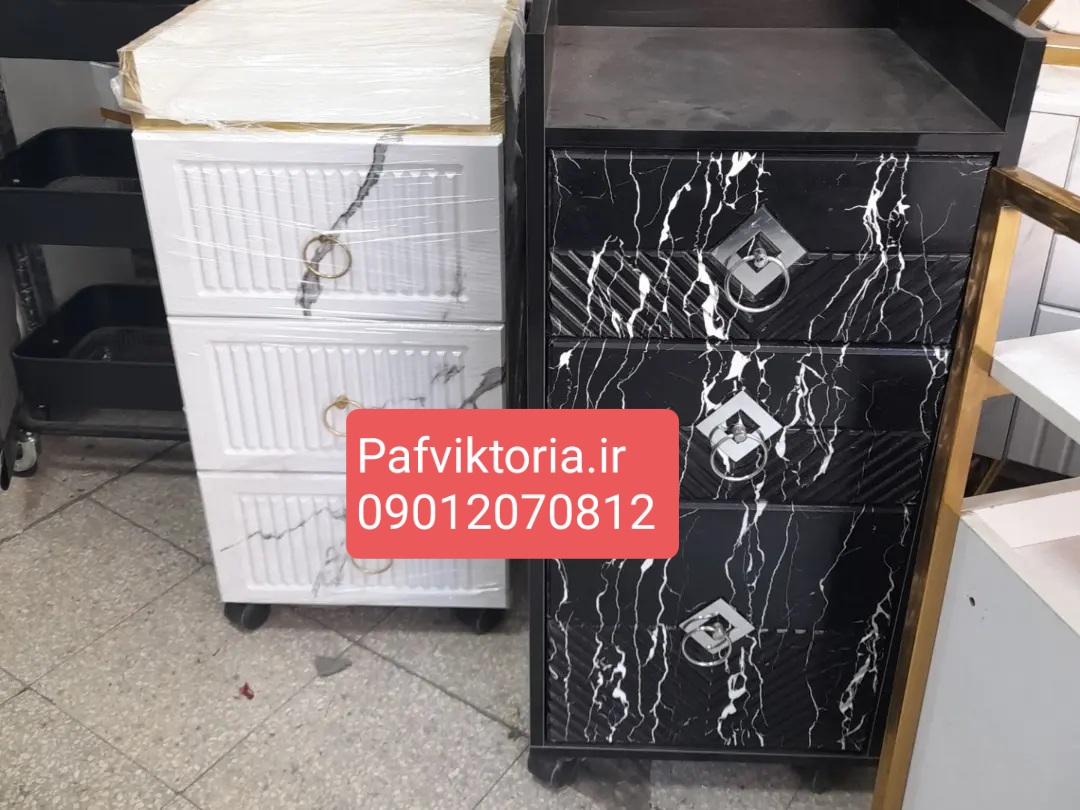ترولی آرایشگاهی فلکسی دو کشو یه کمد مشکی سفید ارسال به سراسر ایران